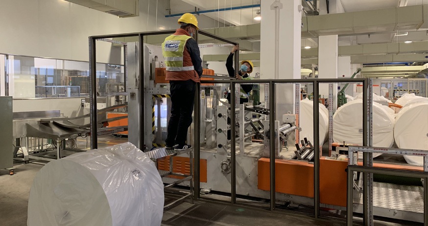 大型造紙廠餐巾紙機(jī)降噪工程,未治理前機(jī)器1米處噪聲為100 分貝,經(jīng)我司設(shè)計、施工治理后機(jī)器1米位置測得噪聲≤85分貝,達(dá)到客戶要求,通過國家環(huán)保檢測驗